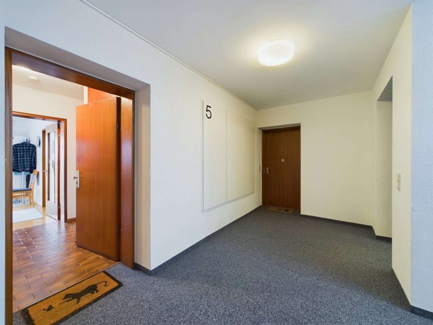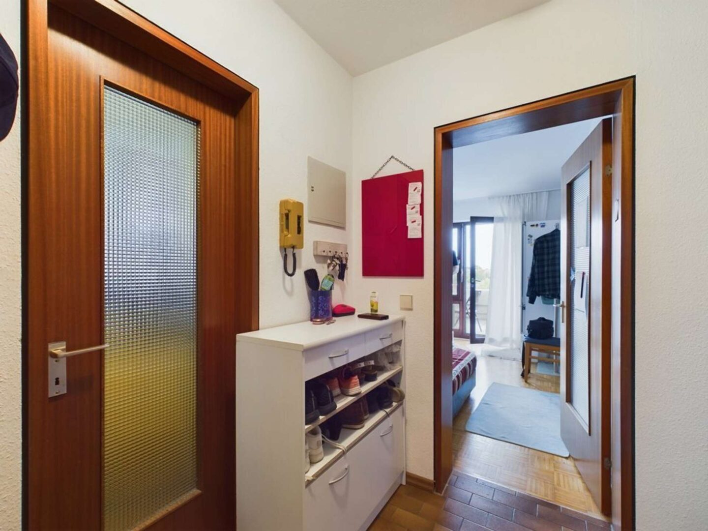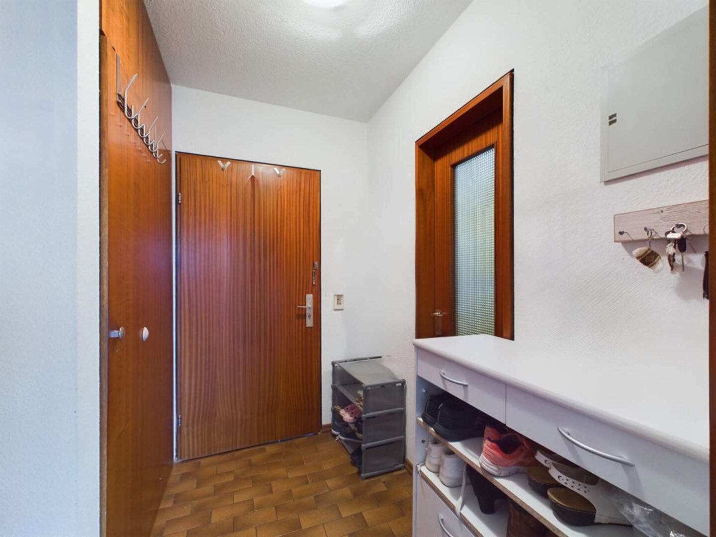 Beim Betreten der Wohnung empfängt Sie ein einladender Flur, ausgestattet mit einem großzügigen Einbauschrank, der als Garderobe und/oder Abstellraum verwendet werden kann.