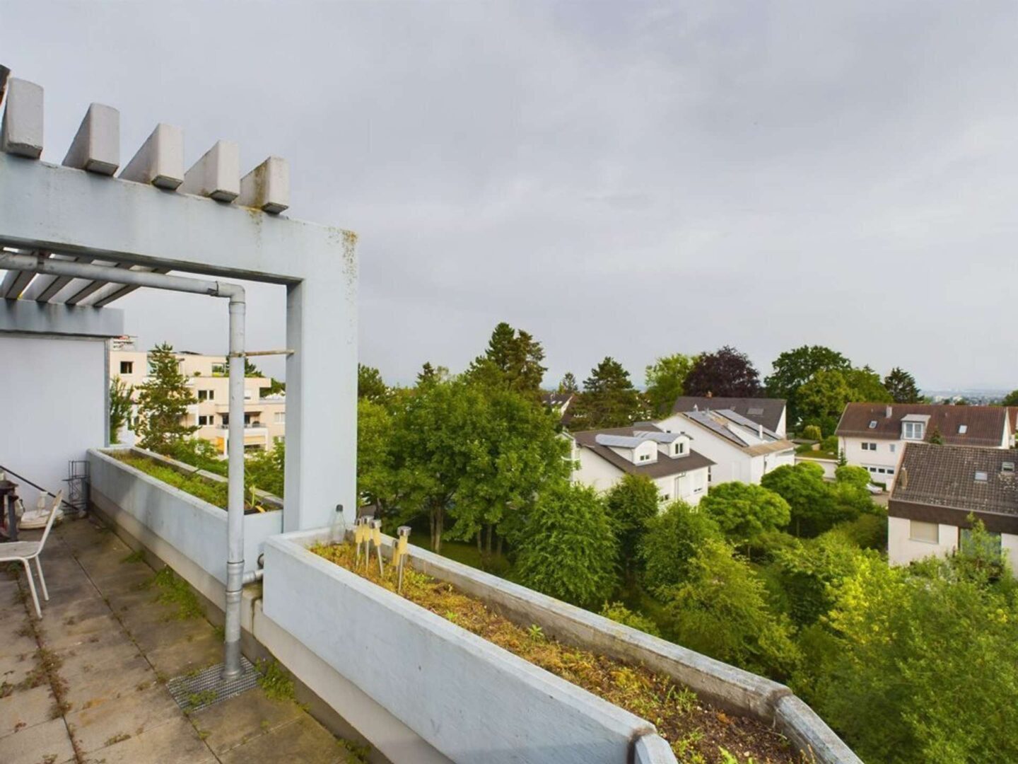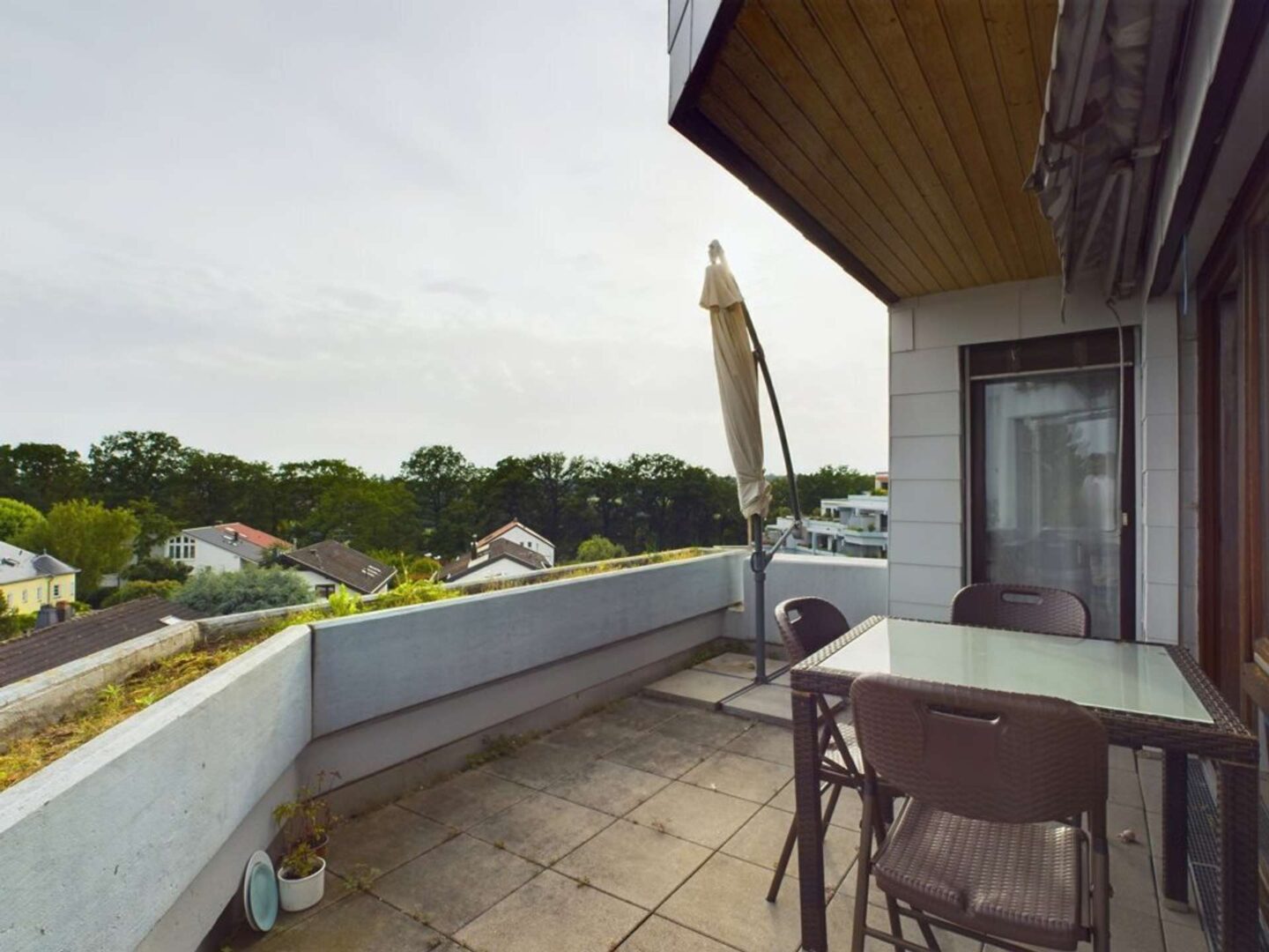 + teilüberdachter Süd Balkon mit Markise - Boden: Betonfliesen