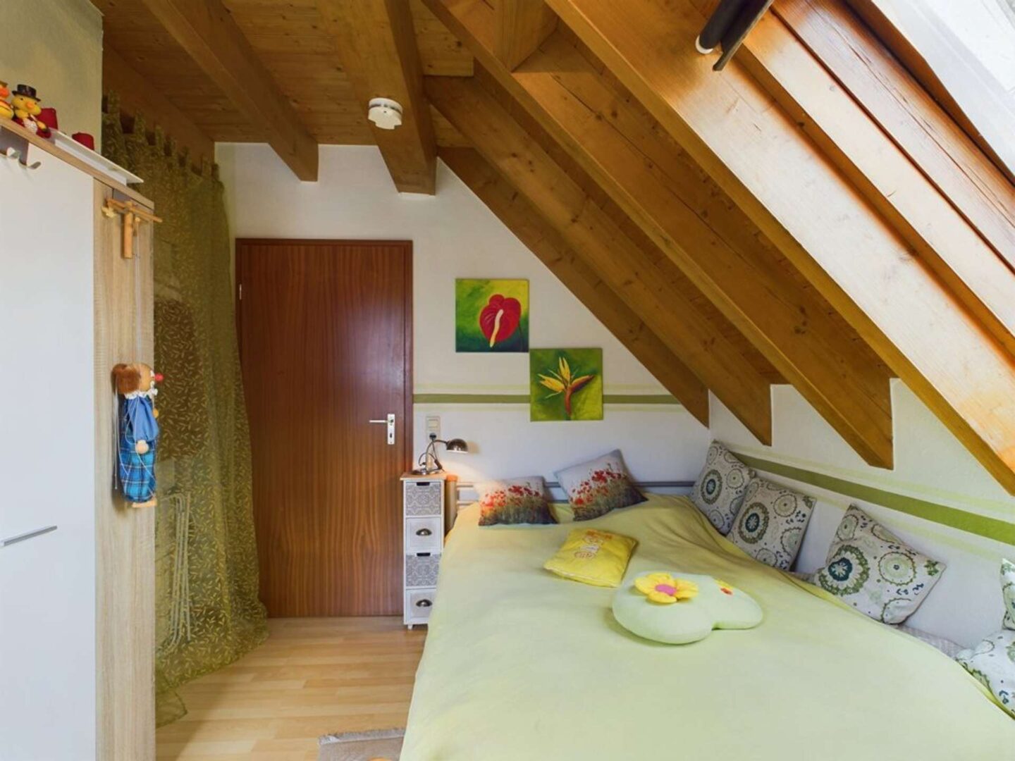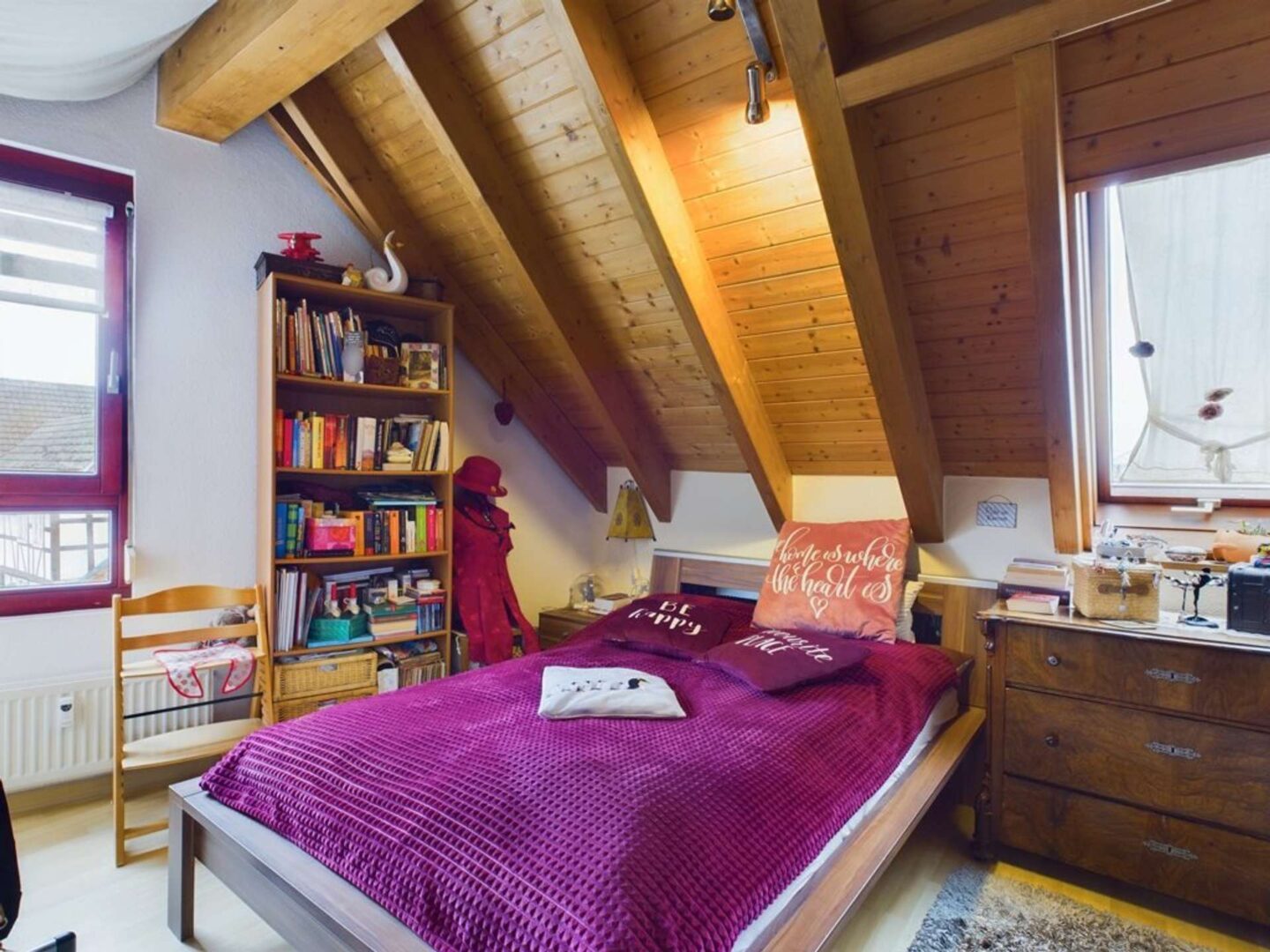 Besonders interessant und einzigartig ist der offene Spitzboden, der derzeit nur über eine Leiter erreichbar ist. Durch die Installation einer festen Treppe kann dieser Raum als Erweiterung des Schlafzimmers integriert werden.