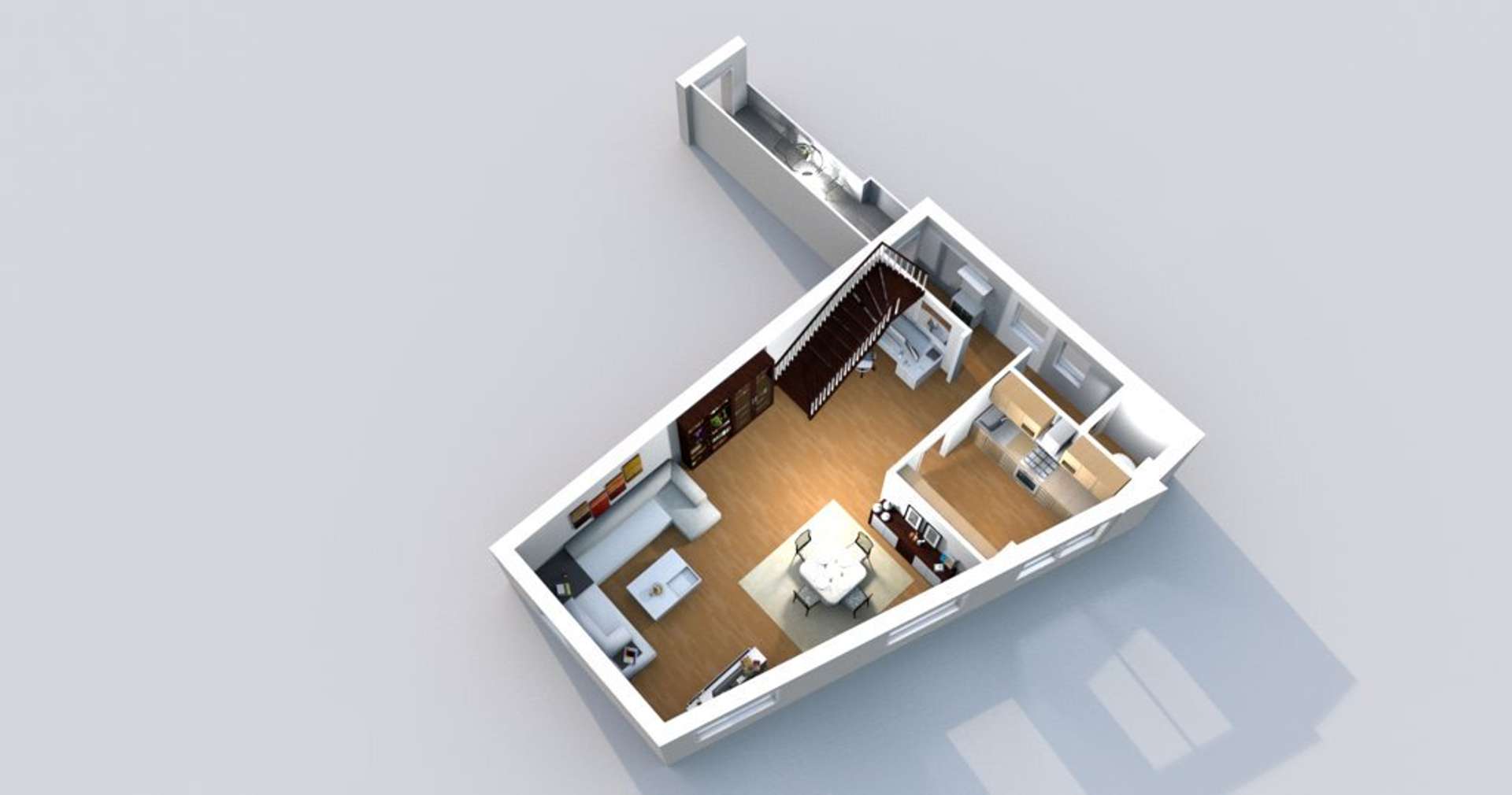 Klug platziert befinden sich die privaten Schlafzimmer im Obergeschoss der Maisonette-Wohnung. Beide Schlafzimmer verfügen über Dachschrägen mit offener Holzverkleidung und sichtbarem Gebälk, was dem Raum seinen eigenen Charme verleiht. Die Dachschrägen sind jedoch sehr steil, was bedeutet, dass auch größere Menschen hier keine großen Einschränkungen haben.