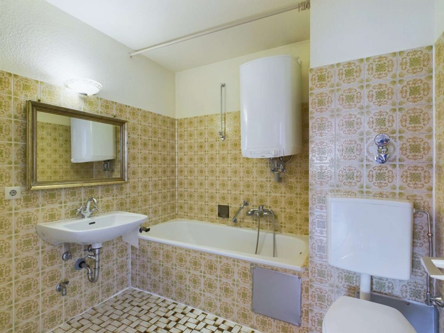 + Gefliestes Badezimmer mit Badewanne, Waschbecken, WC und Waschmaschinenanschluss