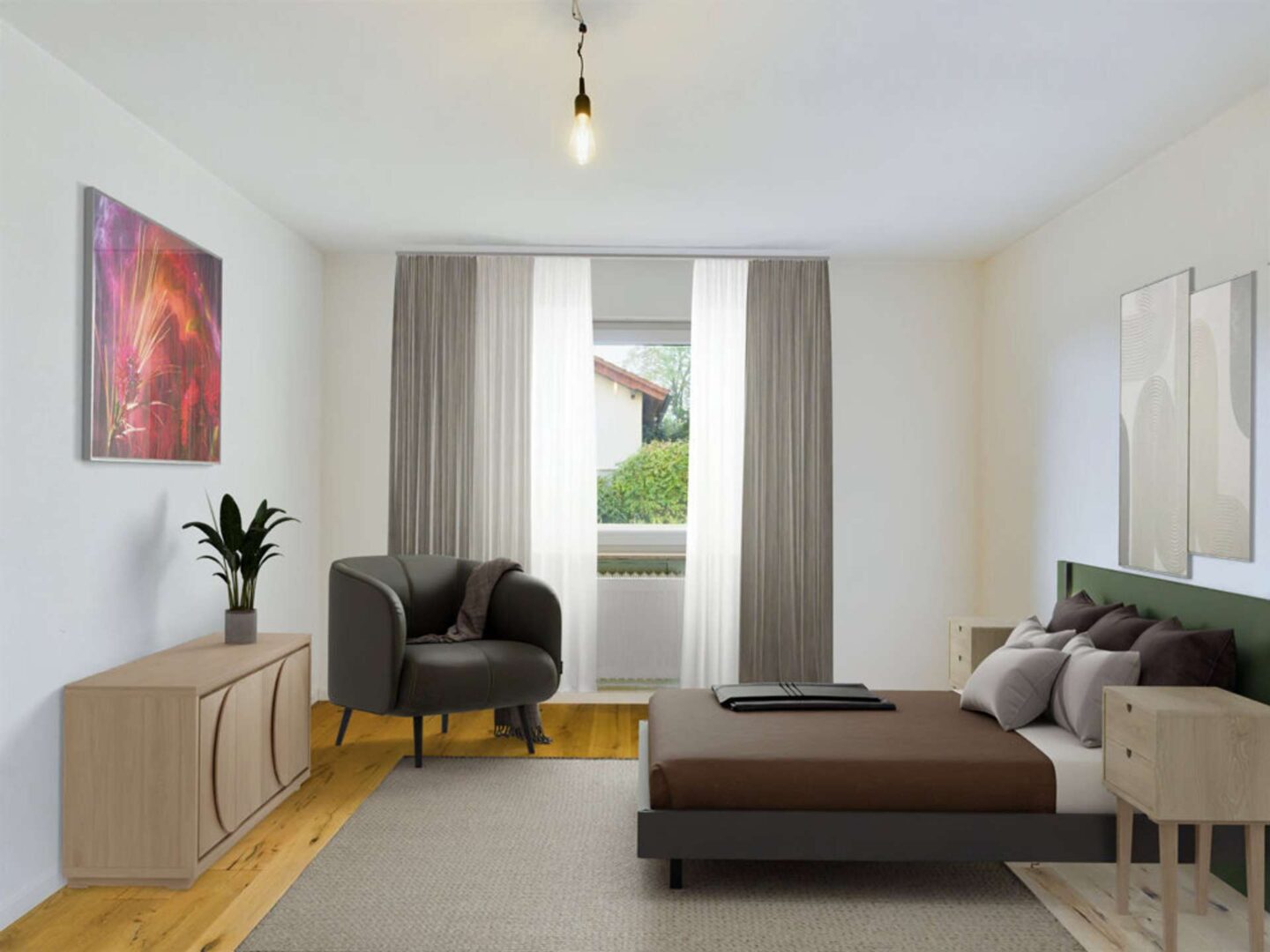 + Schlafzimmer mit Parkettboden, Platz für Bett und Kleiderschrank