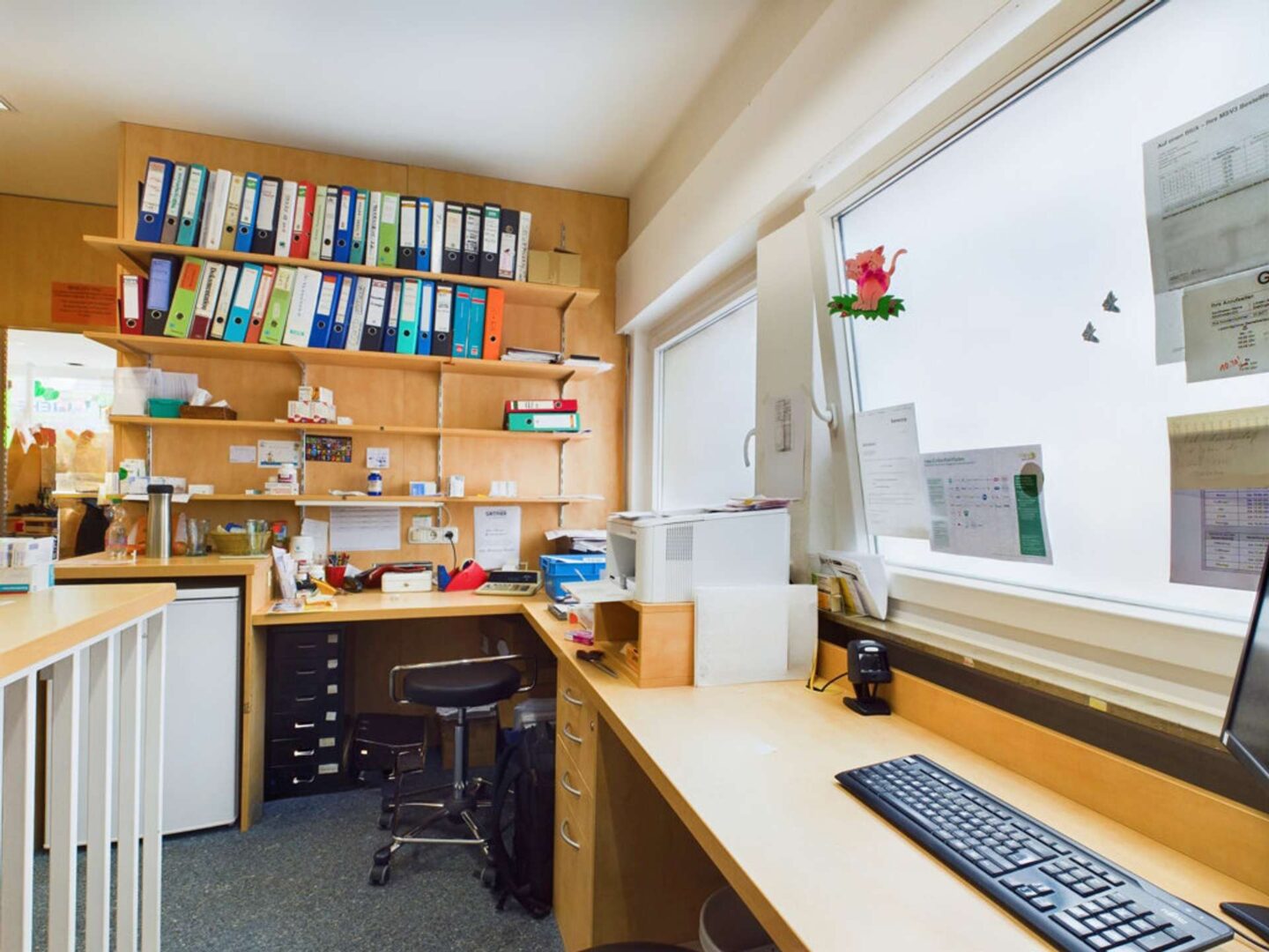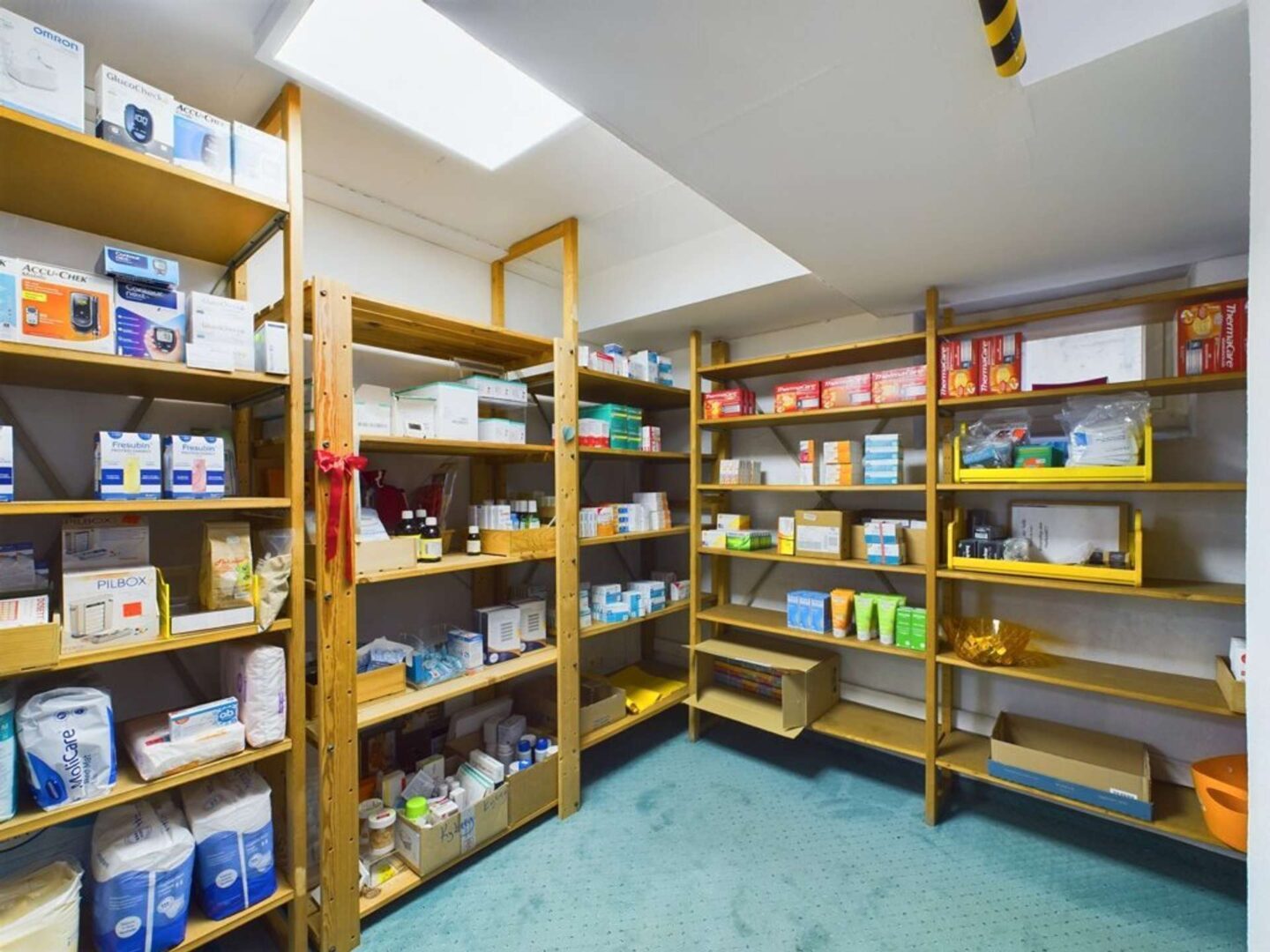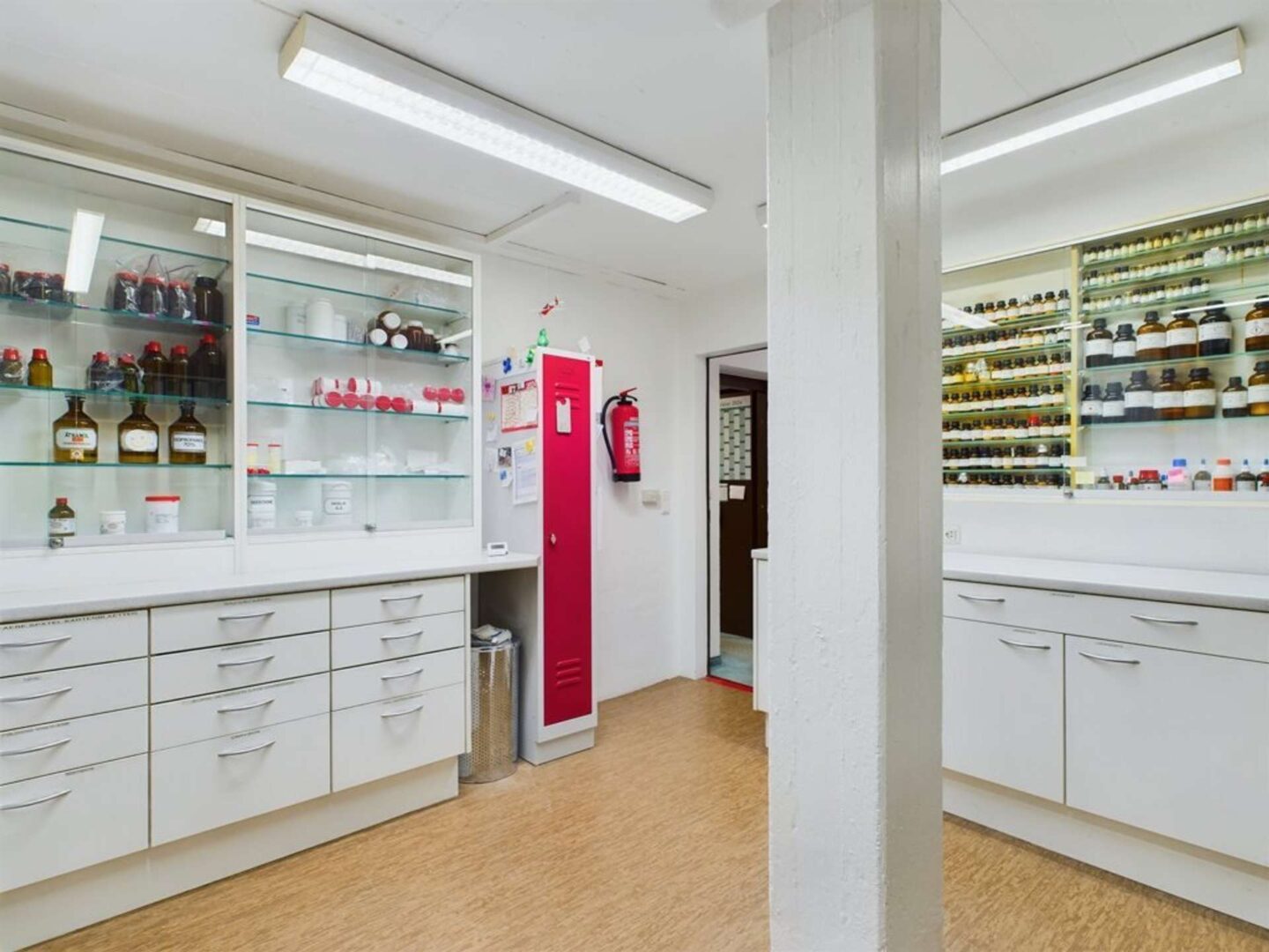 Das Untergeschoss ist über eine Treppe direkt mit dem Erdgeschoss verbunden, was kurze Wege und einen reibungslosen Ablauf zwischen Verkauf, Lager und Labor sicherstellt. Diese durchdachte Raumaufteilung ermöglicht es, die Apotheke effizient und effektiv zu betreiben, wobei alle Bereiche optimal miteinander verknüpft sind. Zwei Kundenparkplätze befinden sich direkt vor dem Haus.